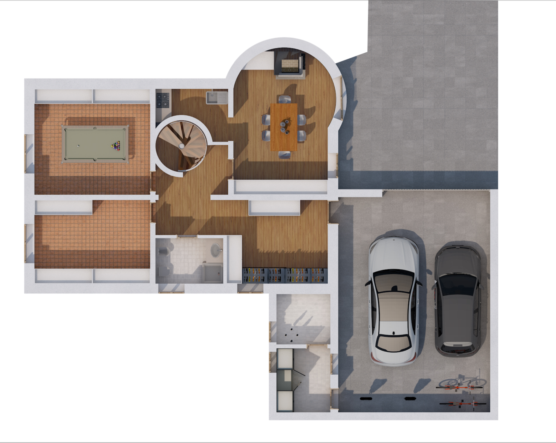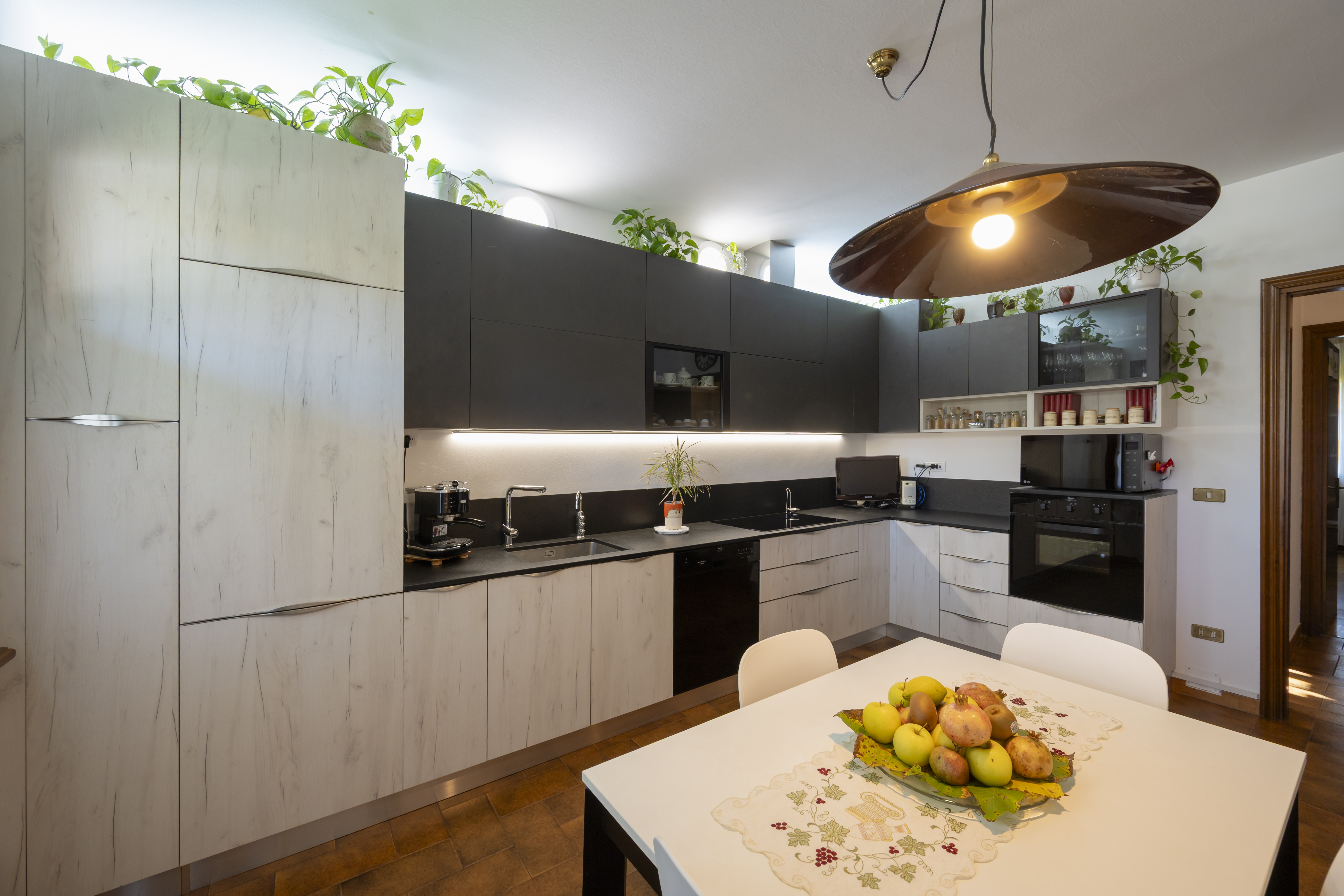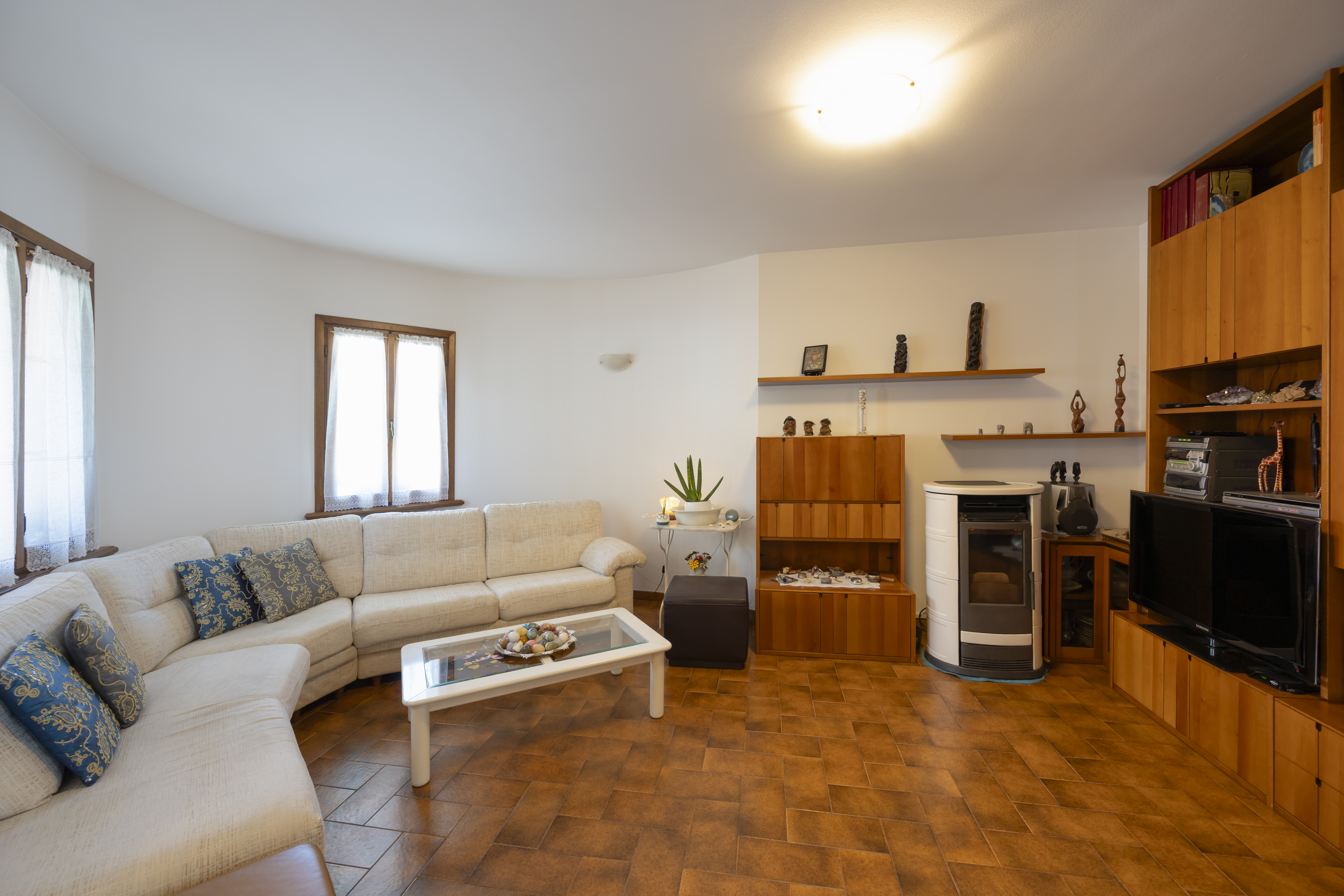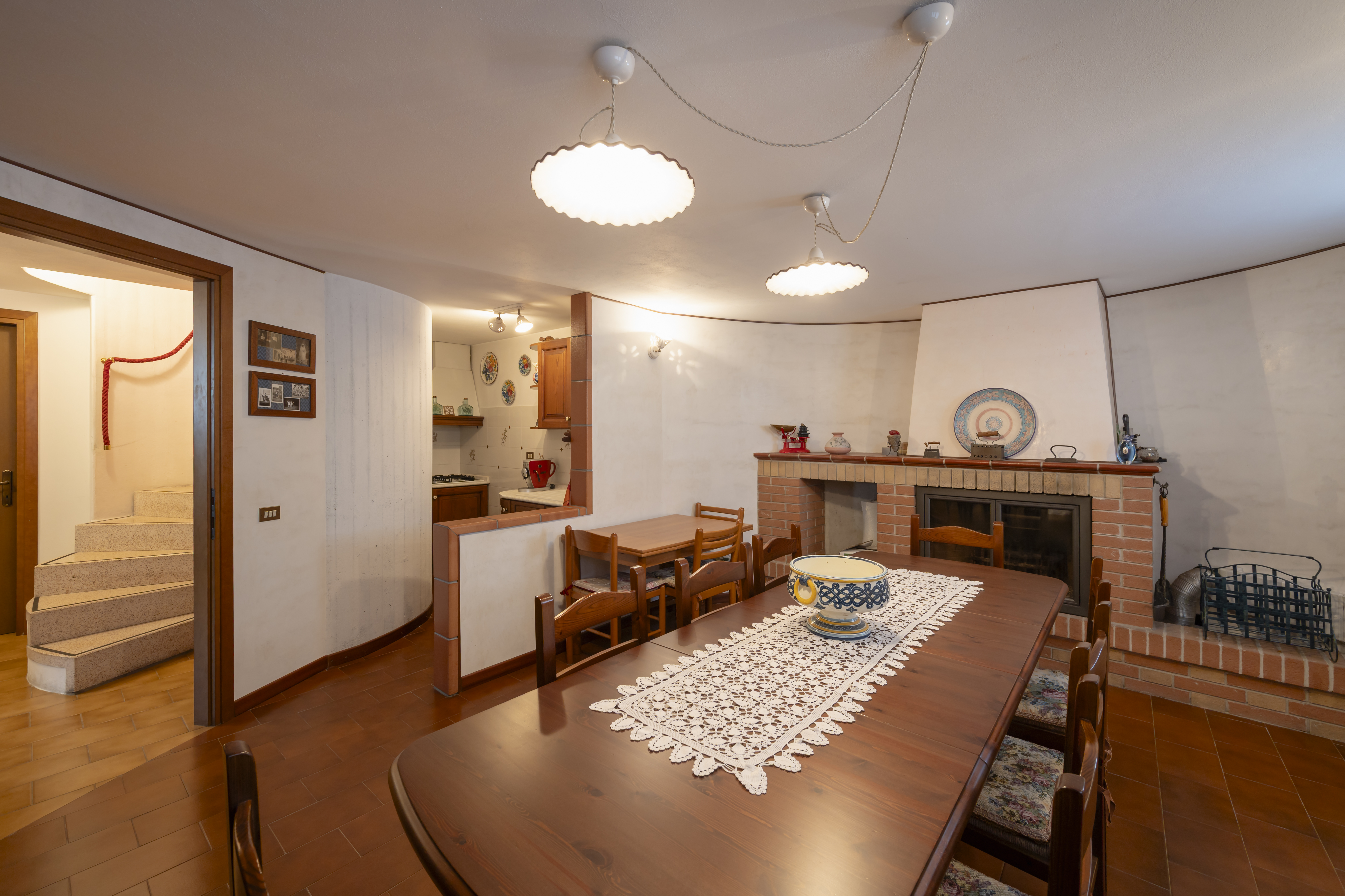 Al piano seminterrato si trovano un'ampia taverna con angolo cottura e caminetto a legna, stireria, cantina, 1 bagno, doppio garage e lavanderia.
